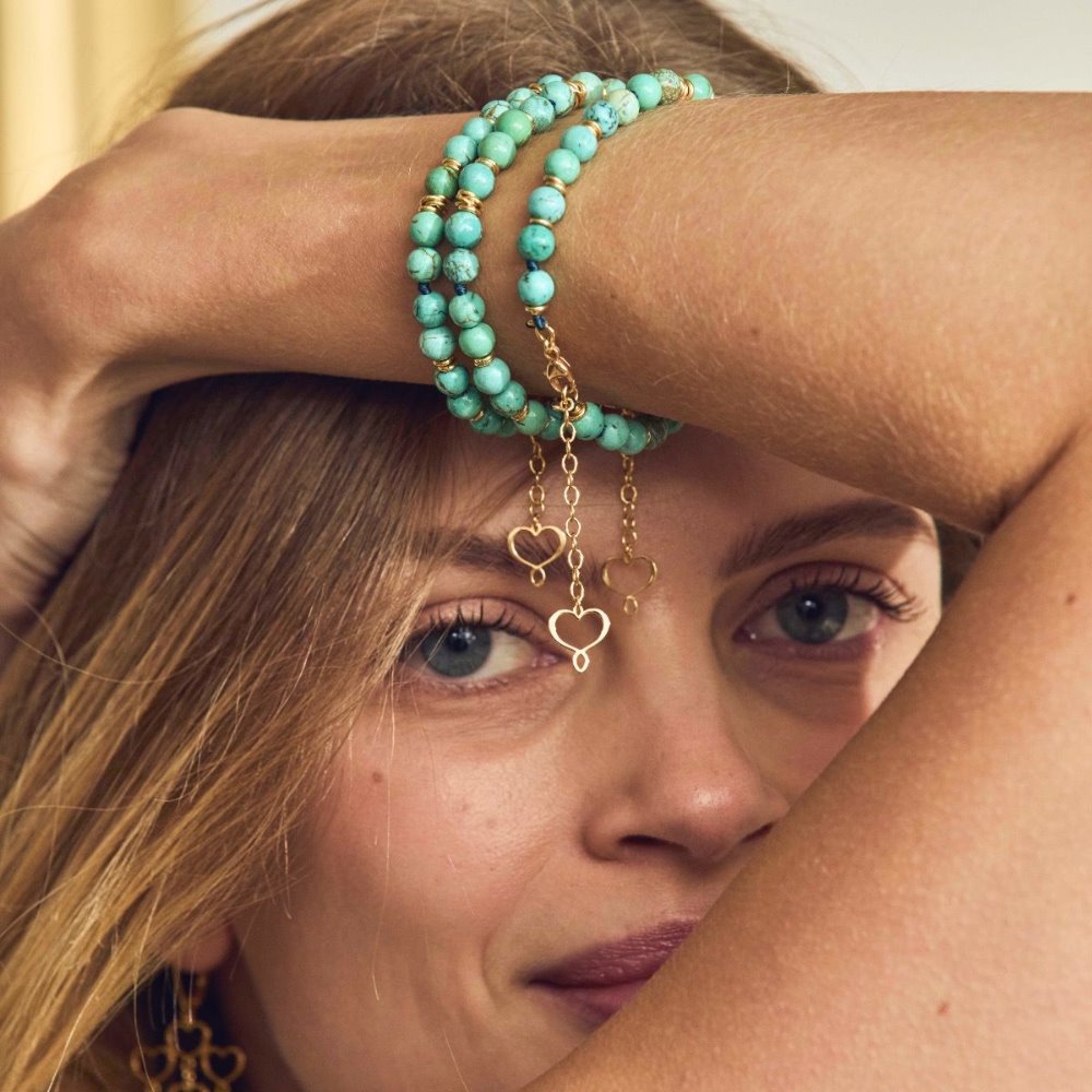 925 silver bracelet with a thick, highly resistant yellow gold plating. The bracelet is entirely covered in chalcedony stones alternating with decorative silver elements. It can be adjusted from a minimum of 16 cm to a maximum of 20.5 cm. A perforated Maman heart is featured at the end. Lobster clasp closure.