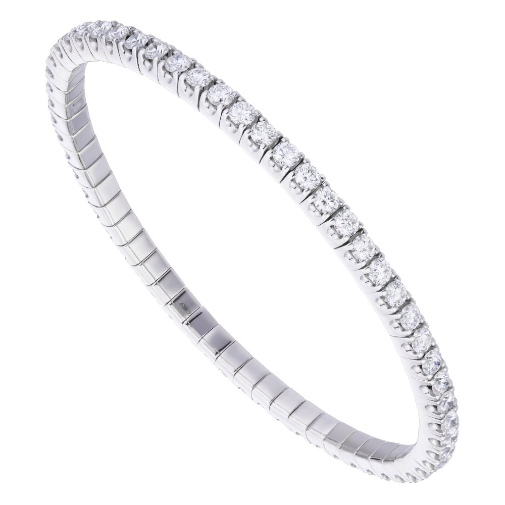 Elastic tennis bracelet in white gold and diamonds. Diamonds: 6.50 Ct. Comments: G VVS Gold weight: 15.38