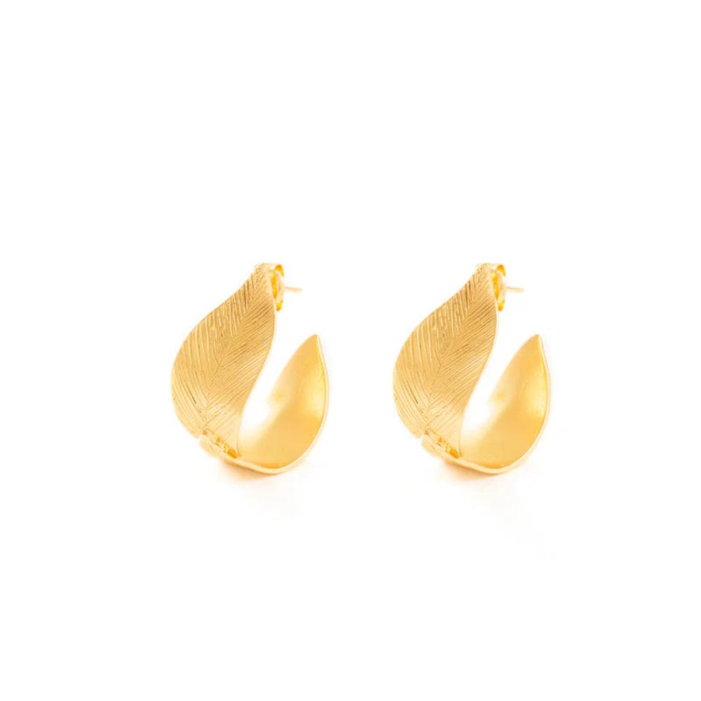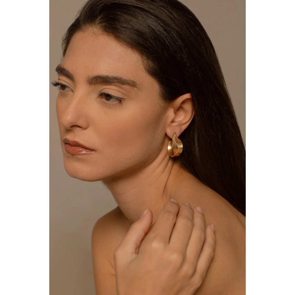 The hoop earrings from the Indian Leaves collection embrace the earlobe with their leaf shape, illuminating the face and adding a natural touch to any outfit. Carefully crafted, they are perfect for those who love organic and authentic beauty. Every detail tells the story of the nature that surrounds us. 24-karat gold-plated bronze Code: A9720
