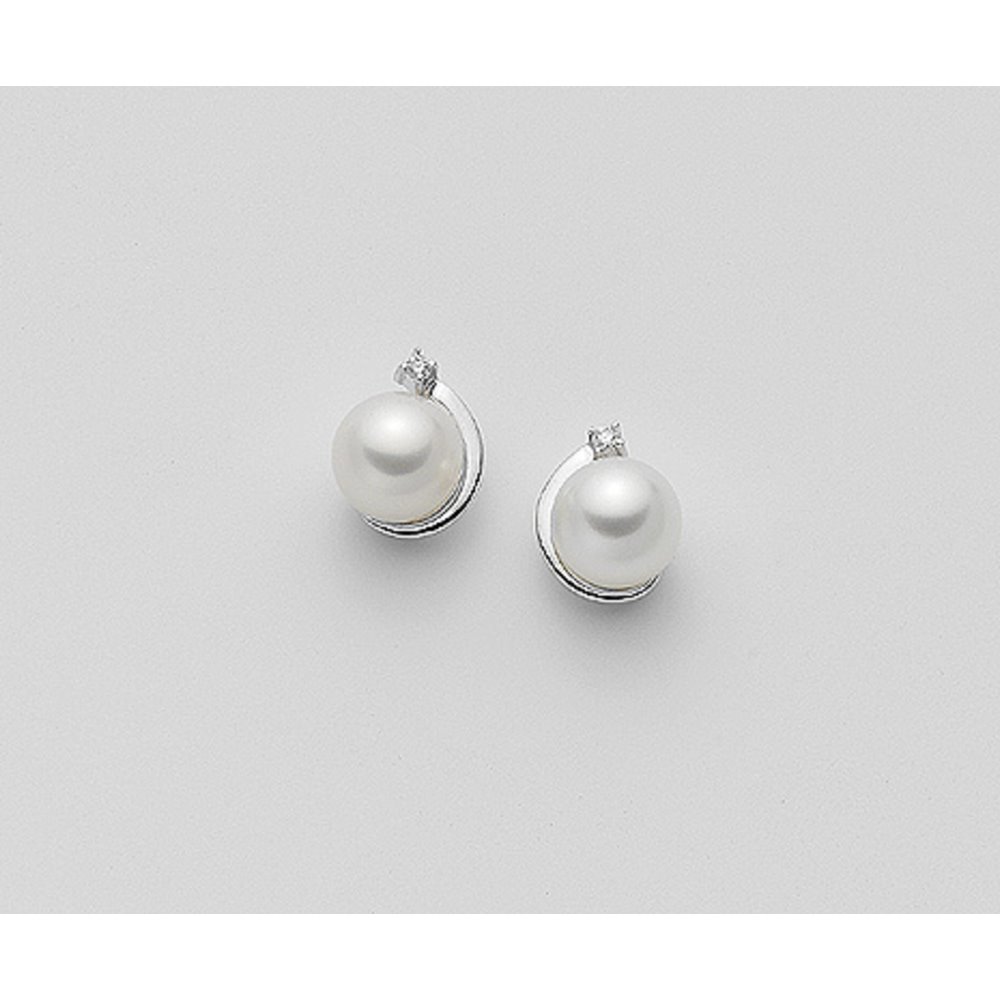 White Gold Earrings with FW 7/7.5 Pearls and Diamonds Diamond Color; G Pearl Color: White Diamond Ct.: 0.02 Pearl Shape: Spherical Pearl Luster: Excellent Pearl Size: Pearl Diam. 7-7.5 Diamond Clarity: VS2 Specifications: 18K Gold FW 7/7.5 ct.0.02 Pearl Surface: Clean Diamond Cut: Brilliant Pearl Origin: Fresh Water