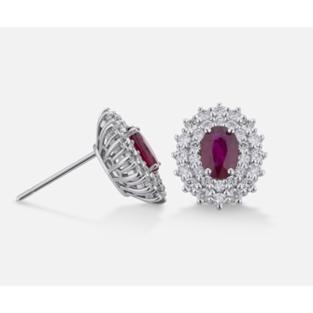 White gold earrings with 6x4 oval natural ruby and diamonds Diamond Color: G Ct. Diamonds: 0.74 Ct. Stones Color: 1.04 Gem: Natural Ruby Diamond Clarity: VS Diamond Cut: Brilliant