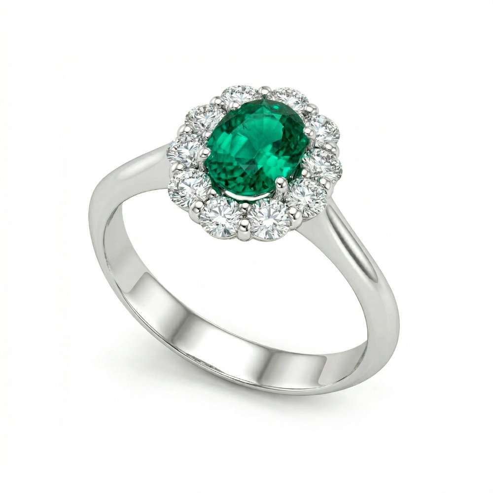 18K White Gold Ring. 1.06-carat 6x8mm oval emerald. 1.01-ct diamonds, G SI1.