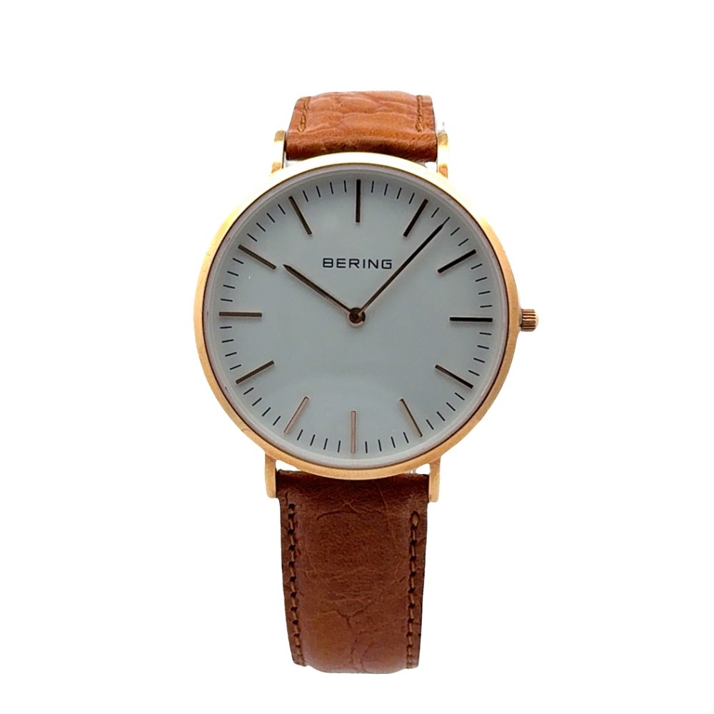 Bering Men's Stainless Steel Watch 13738-564. This Bering men's watch has a simple, modern design. The circular case and white dial give it a truly elegant look, typical of Bering watches. Brand: Bering Reference: 13738-564 Gender: Male Watch Movement: Quartz Case Material: Stainless Steel Case Size: 38 mm Dial Color: White Crystal: Sapphire Strap / Bracelet: Brown Leather Clasp: Buckle Water Resistant: 50 meters