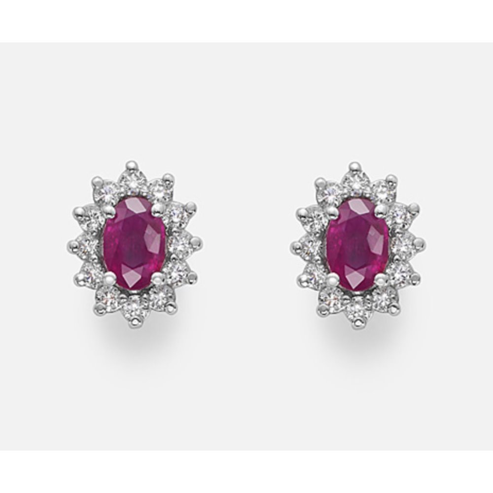 Pendientes de oro blanco con rubí natural ovalado de 6x4 y diamantes. Color del diamante: G. Cantidad de diamantes: 0,46 ct. Color de las piedras: 0,78. Gema: Rubí natural. Claridad del diamante: SI.