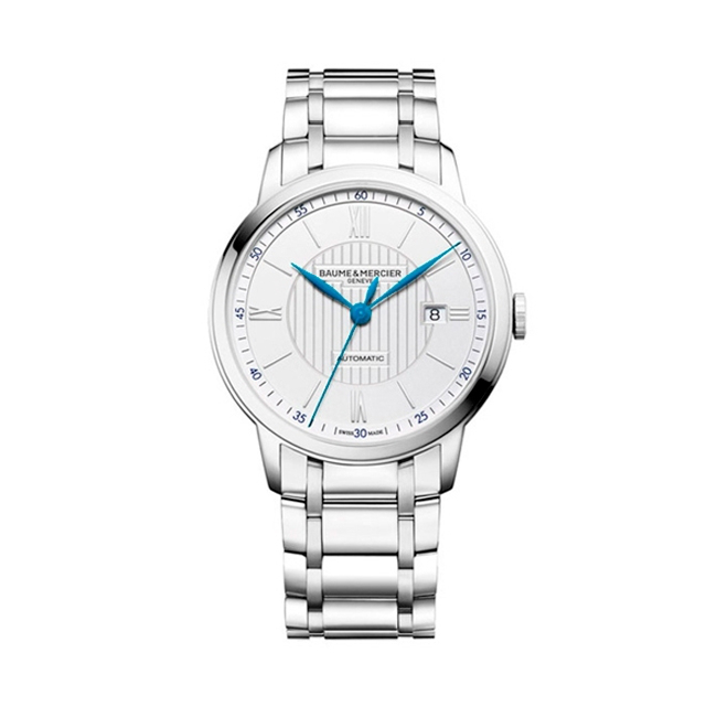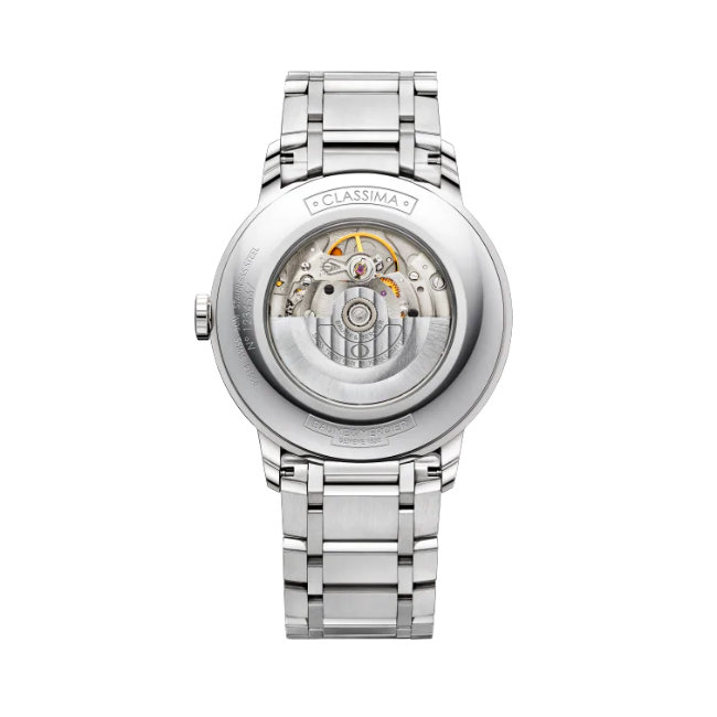 Clásico reloj automático en acero inoxidable con la icónica decoración de líneas entrecruzadas y agujas de acero azulado con encanto masculino, el Classima 10334 es el reloj de lujo que satisface los gustos del profesional urbano moderno. El reloj redondo de 42 mm está animado por un movimiento mecánico automático, visible detrás de la caja de cristal de zafiro resistente a los arañazos. Cuenta con números romanos para marcar las horas, así como marcadores negros de hora y minutos alrededor del borde de la esfera plateada y un brazalete de acero pulido.