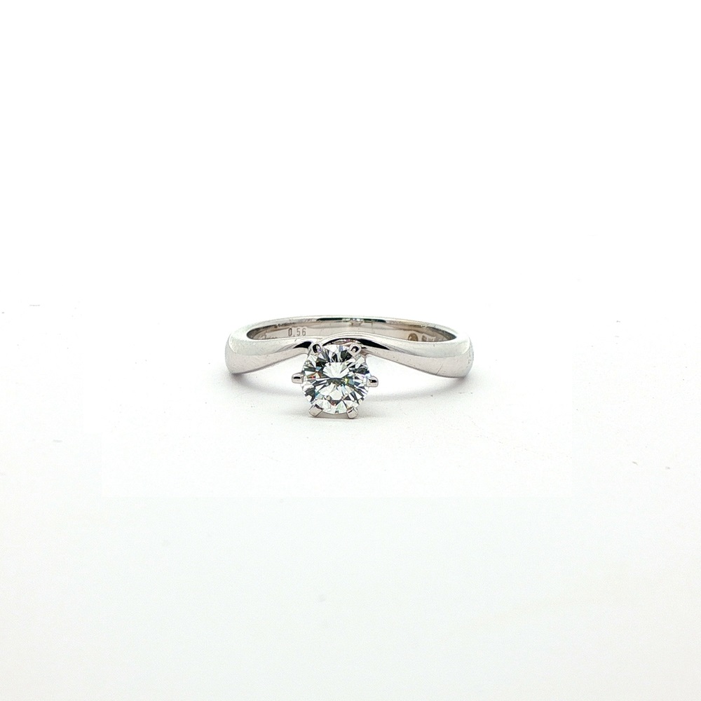 Bague solitaire en or blanc avec diamant de 0,56 ct. Taille 14