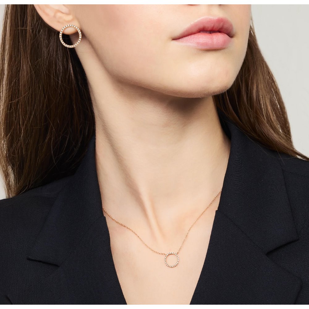 Au cœur de ce collier ras-de-cou en or 18 carats se trouve un pendentif aux formes délicatement arrondies, serti de diamants. La collection Bolle de Marco Gerbella revisite un classique de la joaillerie en lui insufflant une touche contemporaine. Matière : or rose 18 carats. Pierres : 24 diamants, 0,12 ct. Diamètre : 0,9 cm. Longueur de la chaîne : 42 cm.
