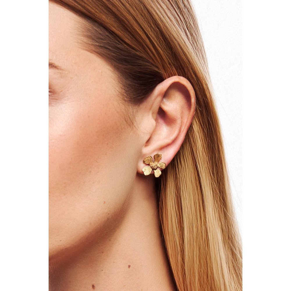L'expression la plus pure du geste. Les boucles d'oreilles Myosotis Small sont comme une présence réconfortante : minimalistes par leur taille, elles n'en sont pas moins capables de réchauffer le cœur. Une touche de lumière qui illumine le visage, idéale pour celles et ceux qui pensent que l'élégance réside dans l'intensité, non dans la quantité. Bronze plaqué or 24 carats. Code : A13715