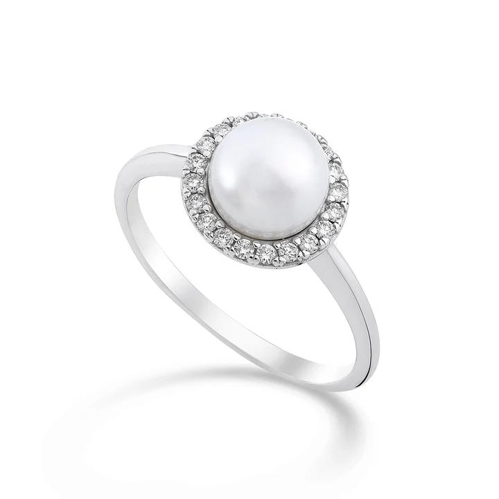 Anello in Oro 18kt e Perla Fresh water 7/7,5 con Diamanti ct.0,18