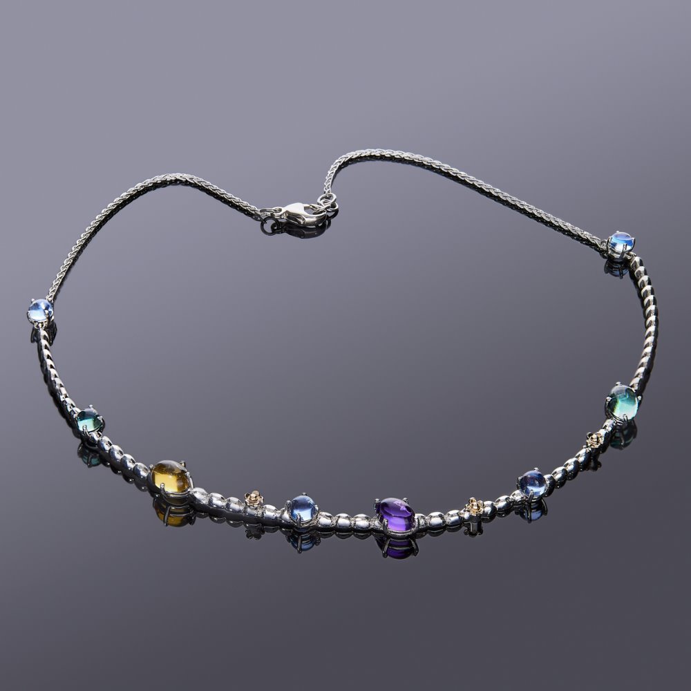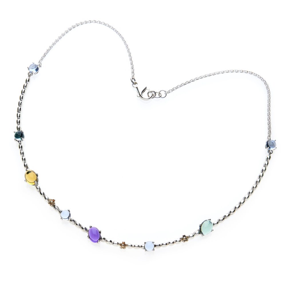 Colar feito à mão, exclusivamente na oficina de' Nobili, em prata 925 e ouro rosa 9 quilates com cabochões de quartzo hidrotermal.